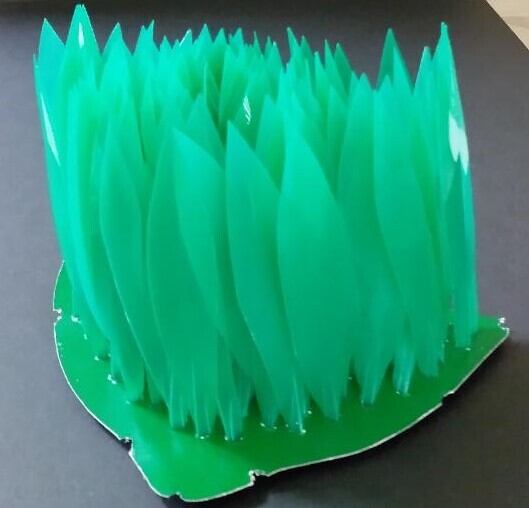 「(サン)グラスホルダー」及び、目に優しく、心と体の緊張をゆるめる効果があると言われている緑色の「ペンホルダー」の機能も有しており、完成した作品を机に置いて「癒し」と「少し不思議な感覚」を味わっていただけるものとなっております。