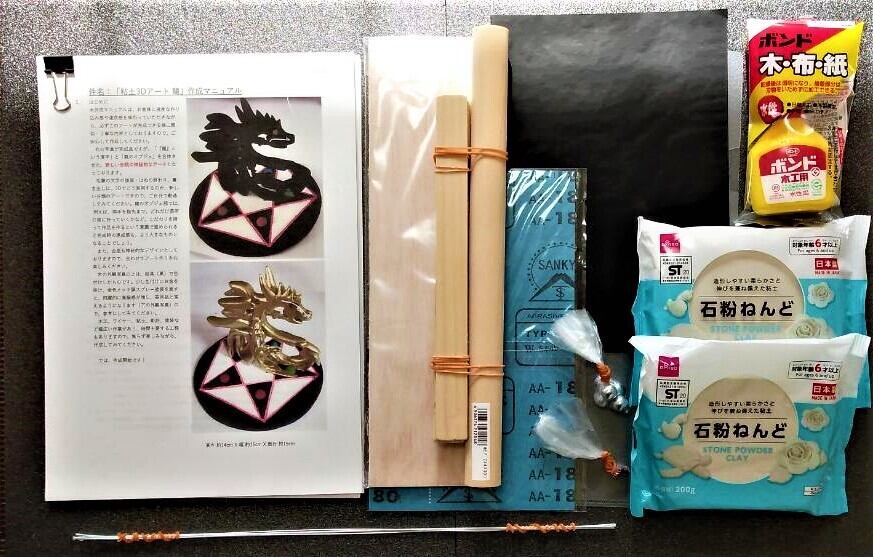 粘土を使用して『龍』の文字部・オブジェ・台部を作り、別体の両手もワイヤーと組み合わせて、細かい造形を行います。乾燥・細かい造形・仕上げ・組立・色付けなど時間を要する工程がありますが、その分、作り込み感・完成時の達成感が得られるはずです。焦らずコツコツと楽しみながら作成してください。