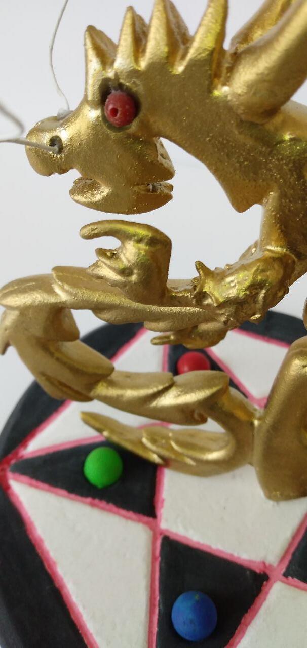 「『龍』という漢字」と「龍のオブジェ」を合体させた、新しい分類の神秘的なデザインの中級者向け粘土3Dアートキット(完成品ではありません)です。