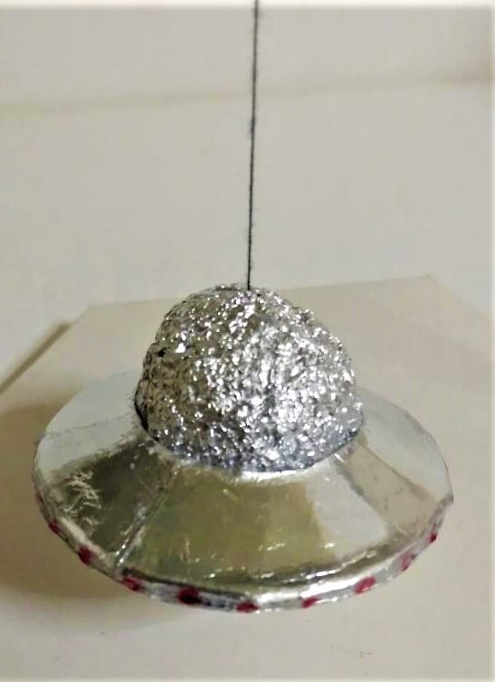 自由気ままに動き回るUFOが作成できる初級者向けアルミホイルアートキット(完成品ではありません)です。