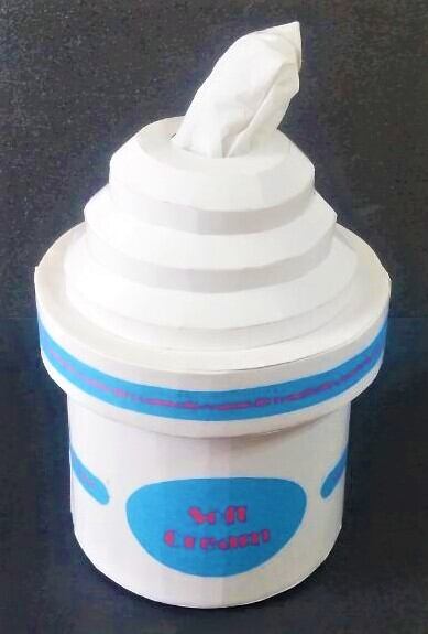 JIS規格に適合したサイズのトイレットペーパーが格納でき、紙を引き出してちぎると「ソフトクリーム」らしい外観になる遊び心のあるアートです。